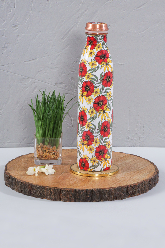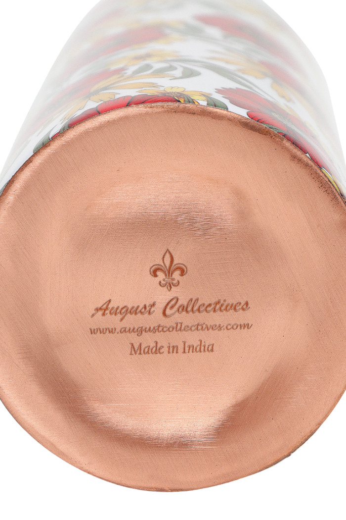 Style meets functionality! Crafted with a durable enamel outer layer and a high quality food grade copper interior, this bottle is the perfect companion for staying hydrated in style. Whether you are on the go or at home, make a statement with this eye-catching piece. Ideal for those that enjoy practical and fashionable accessories. Drinking water from a copper vessel improves your immune system and aids digestion. The bottle is designed with a secure, leak-proof cap to prevent spills, and the robust stainless steel construction ensures long-lasting durability. Order yours now and elevate your hydration game!