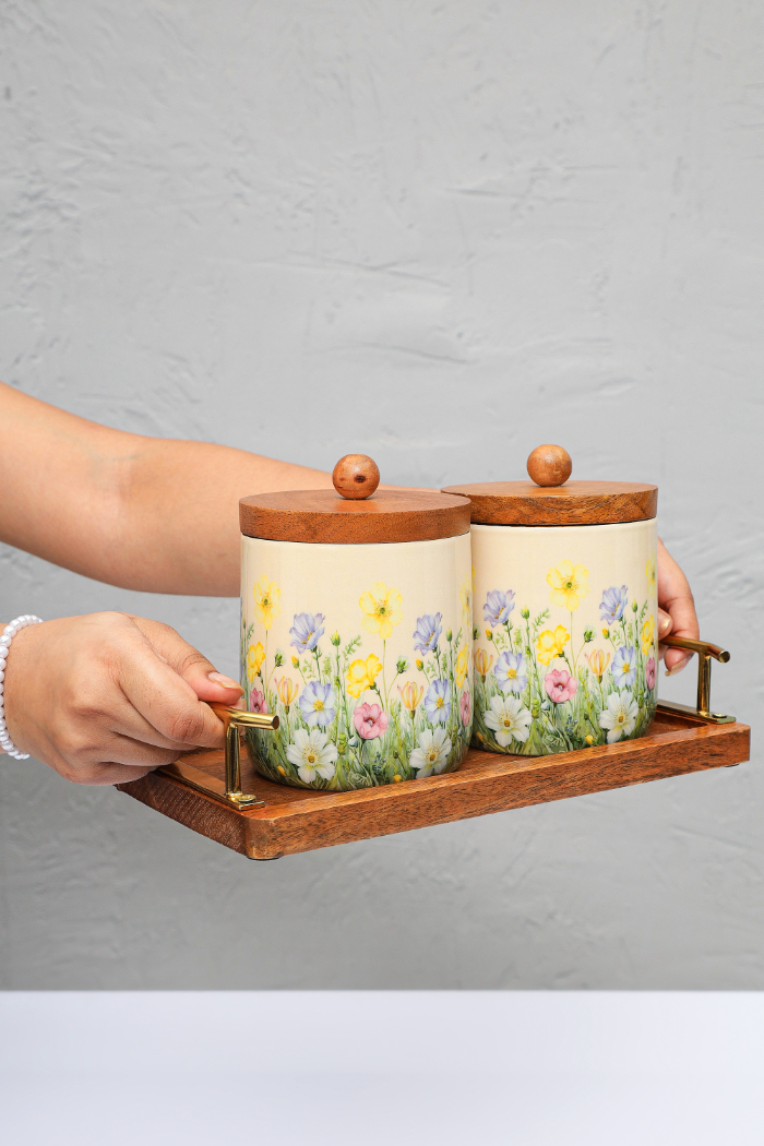Twilight meets tradition in our Dancing in the Dusk storage jars. This elegant set of two foodsafe jars in mangowood brings together moody dusk tones, delicate floral motifs, and timeless craftsmanship perfect for those who find beauty in the quiet moments of the day. Whether storing dry snacks, savouries, coffee, or your favourite teas, these jars are as functional as they are poetic.